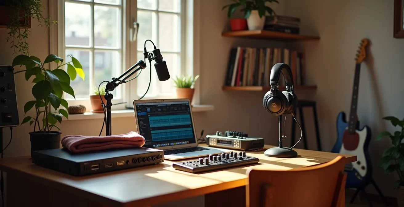 Le rêve de tout musicien ou producteur en herbe : un espace personnel pour créer, enregistrer et mixer sans contrainte. Mais ce rêve se heurte souvent à un mur de réalité, tapissé de listes de matériel aux prix intimidants. On imagine qu’il faut des milliers d’euros, des préamplis à lampes et des enceintes de monitoring de la taille d’un réfrigérateur pour obtenir un son ne serait-ce que « correct ». Cette course à l’armement est une impasse pour les budgets serrés.