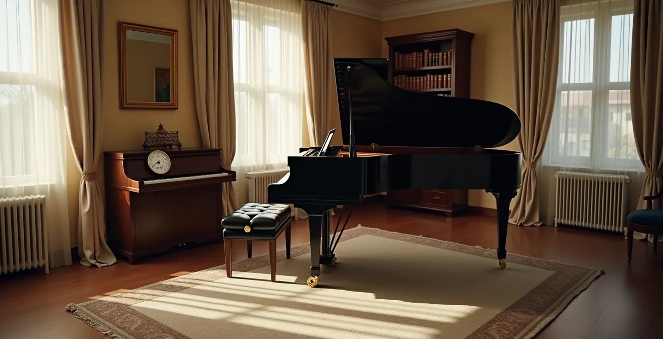 Recommandation : Traitez la pièce où se trouve votre piano non pas comme un simple espace, but comme une extension de l’instrument lui-même, en créant un écosystème stable et protecteur.